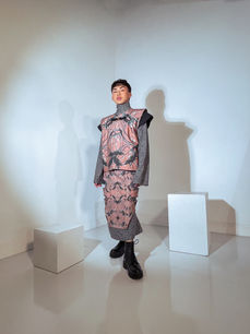 Though its role as a source of income has faded, the poppy continues to represent beauty and cultural pride in Hmong heritage. I was drawn to both its history and its form. The dried poppy pods became the foundation for my design concept; their organic silhouettes influenced the shapes and construction of my garments, while their delicate skeletons inspired my original textile designs.
